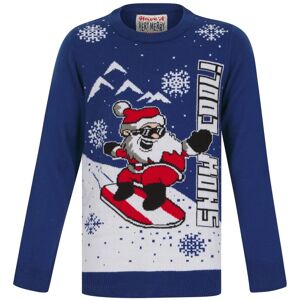 Product Description: Your little one will love feeling festive in this Snow Cool Christmas Jumper! This novelty sweater is made from a soft knit fabric for comfort and warmth. The childs Christmas jumper features a snowboarding Santa wearing ski goggles, and the words Snow Cool to add to the excitement in the countdown to Christmas day. The crew neck design ensures a comfortable fit for all-day wear. Available in kids sizes 4 to 12 years, and in a choice of colours, this Christmas jumper is perfect for a Christmas party, Christmas dinner with the family, or simply getting into the festive spirit. Please see size chart for details. Features: • Novelty Santa on a snowboard design for festive fun • Soft knitted fabric provides comfort and warmth • Crew neck makes the jumper easy for kids to put on and take off • Available in a choice of child sizes from 4 to 12 years • Choose from Sapphire Blue or Ink colours • Material composition: 100% acrylic • Machine washable at 30°C Additional Information: Warning: Keep away from fire. Turn the Christmas jumper inside out before washing.