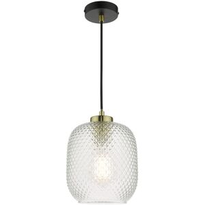 This Dar Tehya ceiling pendant light is finished in matt black with satin brass details. The light features beautiful lozenge-shaped glass, which adds an element of sparkle. Simply stunning in design, this incredible light would look magnificent in both traditional and contemporary interiors. FEATURES: * Ceiling pendant light * Matt Black finish * Satin Brass detail * Requires 1 lamp * Double insulated * Dimmable with suitable lamp / dimmer switch * Height adjustable prior to installation SIZE: * Drop: 300 - 1270 mm * Diameter: 170 mm BULBS: * Requires 1 x Edison Screw LED lamp—NOT INCLUDED
