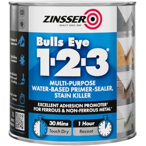 Bulls Eye® 1-2-3 is rust inhibitive and ideal for new metal. It resists flash rusting in its “wet” state – and provides rust resistance for the life of the coating. It dries to a smooth, tight, water-resistant film that is perfect for painting iron railings, steel doors, metal panels, duct work, galvanised gutters – any interior or exterior metal surface. It has a quick 30 minute drying time and 1 hour dry time and can be tinted towards the colour of your topcoat (mid-tone colours only) to eliminate the need for one coat of paint – saving both time and money. Key features and benefits Interior and exterior Adheres to all surfaces without sanding Seals stains, graffiti and tannin bleed Mould and mildew resistant film Rust inhibitive – great for new metal Dries in 30 minutes, recoatable in 1 hour Tintable to mid tone colours Application information Coverage - 10m2 per Litre Touch dry 35 minutes Hard dry 7 days Recoatable 1 hour Thinning Add 10% clean water and stir thoroughly. Note that