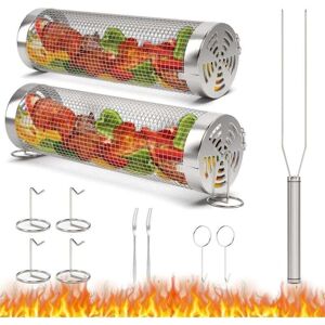 BBQ Accessories: 360 degree rotating basket eliminates the need for constant turning; just roll it easily with a fork to ensure food is heated evenly. The wheeled basket features a secure locking mechanism that prevents food from falling out; grill a variety of foods, including chicken, beef, vegetables and more Portable and Easy to Use: Used for picnics, cooking, camping and other outdoor activities, BBQ food can be stored directly in the cage in the refrigerator without taking up space, can carry a large amount of food when grilling. Professional Food Grade Stainless Steel: Non-stick, not easy to rust, durable, safe and healthy; Easy to clean, it is dishwasher safe and very easy to use over and over again. Variety of cooking methods: ① you can place the barbecue cage directly on the baking tray. ② It can be configured with a bracket to install the barbecue cage ③ can be skewered on the stand to cook the ingredients. You can also make it yourself to have more barbecue fun. Perfect