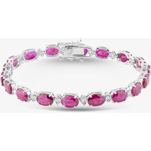 This sophisticated bracelet is crafted in 18ct white gold & features alternating claw set graduated round red rubies & illusion set brilliant cut diamonds which catch the light beautifully. This bracelet is finished with an adjustable lobster style clasp so can be worn to suit comfort & style. A contemporary & stylish bracelet to add a touch of sparkle to any outfit.