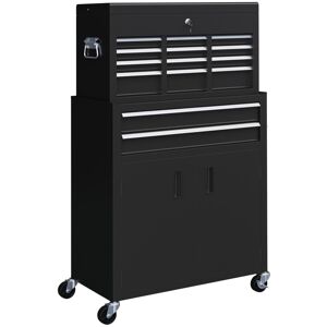 If you need a tool chest to store your tools and keep your workshop clean, this HOMCOM tool chest is an excellent choice. Features a lock to help keep your belongings safe. Inside the drawers are anti-slip mats to protect your tools from damage. And with the wheels allowing smooth and easy movement. This tool cabinet will be a must-have piece for your garage or workshop.- The tool chest and cabinet can be used separately or together; - Features 6 drawers and 1 cabinet to provides large storage space; - Each drawer is padded inside for protection of your tools; - A pegboard on right side for easy access of your tools - Constructed of robust steel frame for high durability; - The top chest is equipped with carrying handles for easy transport; - Comes with four castors (2 are lockable) for easy movement; - The top tool chest comes with a lock to enhance safety and two keys included; - Top chest can be packed in the roller cabinet for easy transportation; - Suitable for home, garage, factory and other related fields use;- - Material: Metal; - Overall Dimension: 61.6L x 33W x 108Hcm; - Top Chest Size: 60L x 26W x 34Hcm; - Cabinet Size: 61.6L x 33W x 65.8Hcm; - Drawer Size: 51.1L x 22.5W x 4Hcm, 51.1L x 22.5W x 8.5Hcm, 51.1L x 30.8W x 6.5Hcm; - Weight Capacity: 60kg; - Item Label: B20-109V00BK; Borough Wharf Colour: Black