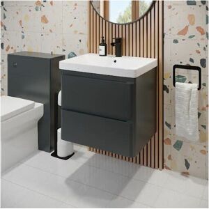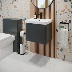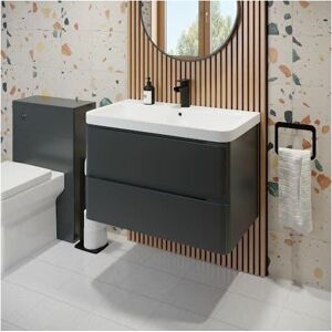 Dimensions Width: 800mm Height: 850mm Depth: 450mm Key Features: Unique curved shape Flat pack design Soft close door Durable resin basin 15-year guarantee as standard Additional information: 15-year guarantee as standard Matte anthracite grey finish All fixings are included Tap and waste are not included Luxurious curved design Our top-of-the-range Regis furniture stands out from the crowd thanks to its gorgeous curved design. The basin edge flows with the vanity unit for a product that not only looks luxurious but feels it too. Soft close door No high-quality bathroom furniture should be without soft-close doors. They're great for those late-night or early-morning trips to the bathroom, keeping noise to a complete minimum! Single tap hole resin basin A bathroom basin needs to be made of pretty stern stuff to put up with the chemicals, lotions and potions that we wash away down them which is why our Regis vanity units feature a high-quality resin basin that is guaranteed to last.