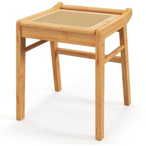 Features: 1. Multifunctional stool can be used as a makeup stool, footstool, step stool or shoe change stool 2. Made of durable bamboo which provides excellent strength and toughness for long term use 3. Extra side reinforcement bars and non-slip foot pads provide extra stability 4. PE rattan surface is breathable and skin-friendlyfor comfortable sitting 5. Space-saving stool is ideal for narrow spaces such as entrances, hallways or bedsides Specifications: Color: Natural Material: Bamboo, PE Rattan Overall Dimension: 38 x 40 x 43 cm (L x W x H) Net Weight: 3 kg Weight Capacity: 120 kg Package Includes: 1 x Stool 1 x User Guide