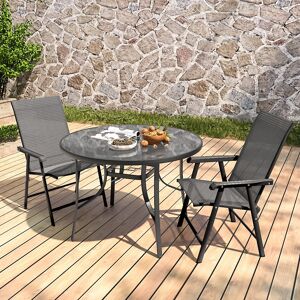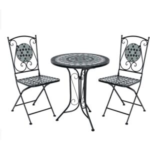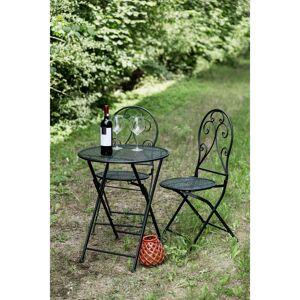 This two-seater bistro set from boasts a truly majestic style. The playful metal shapes, grey/black colour mix and the decorative calligraphic texts together add up to an exceptional, but still elegant look. The combination of modern and retro invites you to sit and relax with a homemade lemonade on a hot summer day. Since it is made of metal the bistro set can be used outdoors all year round and is especially weatherproof and robust. The table and chairs are foldable and so can be put away quickly and easily with a total weight of 16kg and save space when storing. The two-seater bistro set has the following dimensions - table: x 60cm W x 60cm D, 70cm H and chairs: 88.5cm H x 52.5cm W x 39cm D. It is sure to give you a great deal of joy over a long period. This furniture will act as a focal point in your garden whether you have only a little or lots of space. Dakota Fields