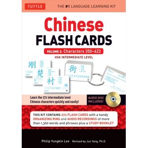 Everything you need to learn the 349 most essential Chinese characters quickly and efficiently is in this box - our #1 Chinese language learning kit! 349 Flash Cards. A Handy Organizing Ring. Audio Recordings of More than 2000 words and phrases. Plus a 32-page study booklet. To succeed in mastering Chinese characters, there are just three secrets: begin with the most useful characters, study them in the most effective order, and use repetition galore!Flash cards remain one of the most effective tools for rapid memorization, and Tuttle's flash cards are the best available today. Whether on a train from Beijing to Shanghai or sitting under a tree in Berkeley, you can study Chinese with this well-designed, easy-to-use set of flashcards.Developed with HSK study and AP test-prep in mind, the front of Tuttle's Chinese Flash Cards give one Chinese character, a stroke order guide, four words and phrases, and look-alike alerts to help avoid confusion. On the reverse is as much information as a dictionary entry: Romanized pronunciation and English meanings, sample sentences for correct usage, plus helpful mnemonics and learning tips. The audio gives native-speaker pronunciations, and a handy organizing ring is the perfect way to keep the cards together when you're on the go. All media content is alternatively accessible on the Tuttle Publishing website.