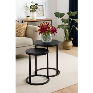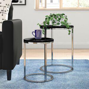 These nesting tables work together or apart for a stylish and practical addition to the home. The two tables tuck into one another, making them space savers when necessary, or they can be split into separate rooms for a unifying aesthetic throughout the home. Two-tone colours create a contemporary look, and the manufactured wood top is easy to clean. Assembly is required. Zipcode Design Colour: Glossy Black/ Chrome