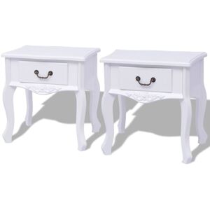 These bedside cabinets with an elegant design make a timeless addition to your interior decor. Durable material: The engineered wood is of exceptional quality with smooth surface and also features strength, stability and resistance to moisture.Ample storage space: The bedside table is designed with 2 drawers and 1 open compartment to keep things organised and within easy reach.Stable and sturdy table top: The top of the side cabinet is perfect for displaying your decorative items, picture frames, and potted plants. Warning:To prevent it being overturned, this product must be used with the provided wall attachment device. Colour: White Material: Engineered wood Dimensions (each): 43 x 36 x 60 cm (W x D x H) Assembly required: Yes Delivery contains: 2 x Bedside cabinet Legal Documents: More details about preventing your furniture from tipping over can be found here