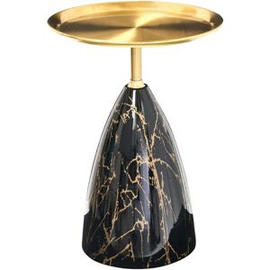 Accent Round Coffee Table. Add a touch of effortless glamour to your living space with this striking metal side table. The beautiful marble-effect base, paired with a shimmering golden top, creates a truly luxurious look. It’s the perfect accent piece to elevate your home's style. Details: Product Type: Side Table Style: Glam General Color: Black, Gold Shade: Black Marble Material Type: Metal Main Material: Iron Legs material: Metal Top Material: Metal Shape: Round Finish: Water Transfer Print Storage: No Dimensions: Width: 39 cm Length: 39 cm Height: 54 cm Weight: 5 kg Weight Capacity: 5 kg Offer Includes: 1 x Side Table Key Features: Elegant Accent Piece, Modern Marble Effect Finish, High Quality, Easy Care and Durable Materials Assembly Information: Does Not Require Assembly Additional Information: To maintain the durability and aesthetics of the worktop, we recommend using place mats and coasters, as well as removing wet stains as soon as possible, to prevent damage to the