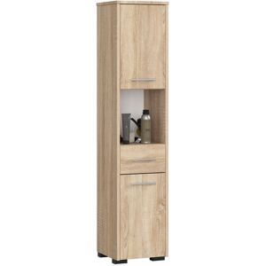 The Floreta tall bathroom cabinet impresses with its optimal arrangement of storage compartments, scratch-resistant, easy-care materials and careful manufacturing. The universal bathroom cabinet is supplied with adjustable feet and a hanging device for wall mounting. Ebern Designs Finish: Sonoma/White