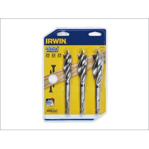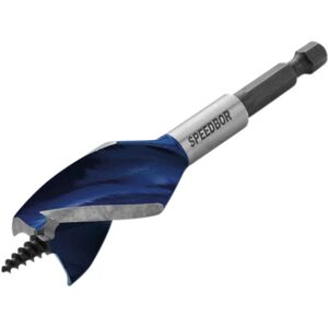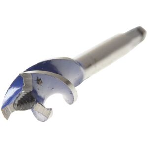 The Blue Groove Power is the world's first wood drill bit to use IRWIN's pioneering bi-metal technology, creating a drill bit with unrivalled speed and durability even in nail-embedded wood. Designed for high-speed precision drilling, it marks an end to the frustration that tradesmen experience when their drill bits strike a nail, frequently causing standard flat bits to become locked or break. The secret behind Blue Groove Power's extraordinary strength is IRWIN's bi-metal technology, a composition of two high performance components, high speed steel and carbon steel, which both have their own attributes and benefits. The high-speed steel edge provides durability and allows nail cutting, while the carbon steel body gives the bit flexibility. Each bit in the Blue Groove Power range has a self-feeding tip which helps to pull it through materials, as well as three cutting edges which enhance chip removal for a fast, clean hole. Sizes : 14, 16 and 18 mm. IRW10507720