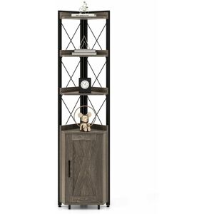 Make full use of the corner space with our 6-tier corner shelf with cabinet! The sturdy metal frame as well as 6 solid legs contributes to a stable performance. With 4 open storage shelves and 1 enclosed storage cabinet, items are stowed in order. Moreover, the shelf behind the door is removable and adjustable, fitting items of different heights. You do not need to worry about objects falling since there are raised edge protection and anti-falling x-shaped braces. The anti-tipping fittings allow the tall corner bookshelf to stand stably. Furthermore, the tall corner shelf takes full use of the corner space for extra storage capacity, which is ideal for the living room, kitchen, balcony, etc. Features: Creative diamond shape adds attractiveness 5-position adjustable shelf for items of various heights Metal frame and 6 legs for excellent stability Anti-tipping fittings included for secure use Adjustable non-slip foot pads adapt to uneven grounds Convenient metal handle for easy opening