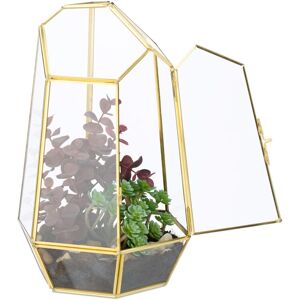 Create your own indoor garden with this decorative, house-shaped plant terrarium. Perfect for moss, succulents, or air plants, this mini greenhouse creates an ideal microclimate to help your plants thrive.The terrarium's compact design makes it easy to place on a shelf, windowsill, or table. use this glass terrarium to bring a fresh pop of greenery to any room in your home. Plant Terrarium in Detail - Overall dimensions H x W x D: approx. 15 x 15 x 10 cm - Internal dimensions H x W x D: approx. 14.5 x 14.5 x 9.5 cm - Window opening dimensions W x D: approx. 14 x 7 cm - Material: Glass, copper - Weight: approx. 0.6 kg - Available in various colours Mini Indoor Greenhouse Made of Glass - Perfect for stylish greenery with small plants like moss, succulents, or air plants - House-shaped design as a decorative element for modern and classic interiors - Creates its own microclimate to support plant growth - Suitable for use on windowsills, desks, or shelves - Easy to care for with minimal