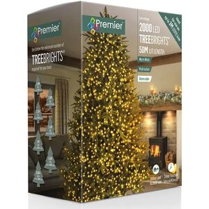 Transform your home into a festive wonderland with the Premier 2000 White LED Treebrights. Designed for both indoor and outdoor use, these mains-powered lights offer a stunning bright glow across a generous 50-metre length, making them ideal for decorating large trees (up to 3m tall), fences, or facades. Key Features: - 2000 energy-efficient LEDs in a bright white tone - 8 lighting effects including twinkle, fade, and steady-on - Timer function: 8 hours on / 16 hours off for hassle-free operation - Durable green cable blends seamlessly with foliage - Mains-powered with a safe 31V low-voltage adapter - Suitable for indoor & outdoor use Whether you're dressing your Christmas tree or lighting up your garden, these versatile string lights bring festive cheer with style and reliability.