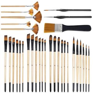 32-Piece Paint Brushes - Acrylic Painting Set includes 6 series of 32 paint brushes. Whether it's extreme detail or large areas, these round, square, scalloped and flat brushes work great High Quality Nylon Bristle - Soft nylon bristles are great for load carrying capacity and color control. Nylon bristles are easy to clean and rinse, new, and are suitable for long-term use Comfortable wooden handle - the handle is coated with non-toxic waterproof protective varnish; the handle is designed to fit the curve of the hand, so you 't feel tired when painting for a long time Anti-drop Synthetic Nylon & Wooden Handle: The nylon brush is secured with aluminum crimp ferrule. brushes 't loosen or fall off - built to last. Suitable for all kinds of art painting, manual filter head nylon brush, Multi-Purpose Brush Set: The tips perfectly the purpose for which they are designed. The versatile Mini paint brush allows you to accurately complete fine details and artistic painting with rigor. Suitable