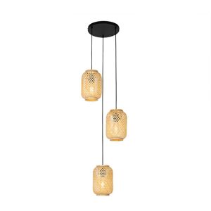 QAZQA Oriental Pendant Light Bamboo 3-Light Oblong - Amira Refresh your interior with the Amira pendant light. Made of bamboo with steel and finished in natural with black, it's a must-have for an oriental interior. The pendant light has a height of 130 cm, length of 112 cm and width of 28 cm. The mounting plate has a height of 2.5 cm, length of 95 cm and width of 8 cm. The 3 light points make it a real mood maker! The pendant light has E27 fittings (40W). The light sources are not included, so order them separately. Need less light and a cosy atmosphere? Amira is dimmable, but a dimmer is not included. You can just keep looking at this pendant light: what a gem Amira is! Bulb holder: E27 . Max 3 x 40 W, 230 V Suitable for: LED Connecting voltage: 220V/230V Protection class: IP20 Dimmable, dimmer not included,No, without cord and plug Lightsource: Exclusive The QAZQA Oriental Pendant Light Bamboo 3-Light Oblong - Amira is Naturel. Suitable living spaces for this lamp are: Indoor
