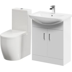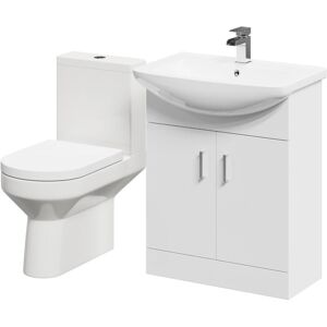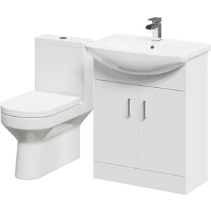 Model Number: WDB92342 The Neiva Gloss White 650mm 2 Door Vanity Unit and Toilet Suite including Darnley Round Toilet will enhance your bathroom in style. Comprising a handy storage vanity unit with a basin and a toilet, it provides all the practical elements you need for your new bathroom. The 650mm vanity unit features two soft closing doors with chrome handles and one internal shelf perfect for storing away all your bathroom essentials. The Vitreous China basin sits on top and comes with one pre-drilled tap hole. Finishing the suite is the close-coupled toilet in a modern round shape with a soft close toilet seat for ultimate luxury. Shop the Neiva Suite online and in-store today. Key features Soft close toilet seat Vanity unit with two soft close doors and one internal shelf Chrome D-shaped handles included Basin features one pre-drilled tap hole Unit comes built Comprising of: Round Close Coupled Toilet Cistern with Fittings W:365mm x D:140mm x H:420mm D Shaped 360mm Wrap Over