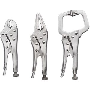 1.Firm gripping, High durability,Designed to grip from any angle. 2. Knurled adjusting screw: the knurled design of the adjusting screw is convenient for anti-skid 3.Ergonomic knob: smooth adjustable jaw opening with locking nut. 4.Sawtooth jaw, clamping workpiece is tight, not easy to slide, and clamping is powerful 5.Self centered rod & lever: Keeps handles aligned, ensures years service. Color: Silver Material: carbon steel Package Contents: 1 x 4inch (10cm)curved jaw locking pliers 1 x 5inch (12.7cm)mini C-clamp pliers 1 x 5inch (12.7cm)long nose locking pliers Only the above package content, other products are not included. Note: Light reflection and different displays may cause the color of the item in the picture a little different from the real thing. The measurement allowed error is +/- 1-3cm.