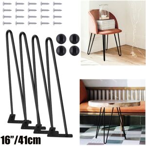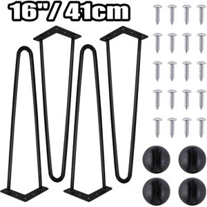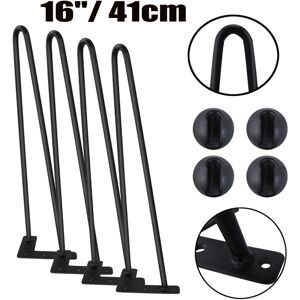 Specifications: 1. Material: Steel 2. Number of Prong: 2 Prong 3. Steel Thickness: 10mm 4. Height:16" (approx. 406mm) 5. Color: Black Package Includes: 4 x Premium Hairpin Table Legs NOTE: 1.For your safety, please make sure you screw tightening 2.Load capacity: up to 220 lbs (100kg)/set 3.Bare steel legs clean and treatment: Please use cloth to wipe the surface, degreaser can be used for clean surface grease on legs, if you painting them in your colour. 4.Bare steel rods can look a bit different than the picture (this is unfinished steel) We provide customer-friendly support. Please feel free to contact us if you are not satisfied with our products. Thank you!