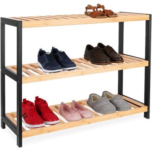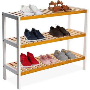 The shoe organiser helps you keep your shoe collection tidy and organised, ensuring a neat entrance area. Three pairs of shoes can be stored on each of the open, easily accessible shelves. With this shoe rack, you'll always have your favourite footwear on hand, whatever your outfit or the weather. Thanks to its slim design, this space-saving bamboo shoe rack fits perfectly in small hallways, corridors, or narrow stairwells. Shoe rack in detail - Dimensions 2 levels H x W x D: approx. 33 x 70 x 26 cm - Dimensions 3 levels H x W x D: approx. 55 x 70 x 26 cm - Distance between levels: approx. 18.5 cm - Load capacity per level: approx. 4 kg - Material: bamboo - Available in various colours Narrow bamboo shoe rack - Neat and tidy shoe storage - Ample storage space - Space for 3 pairs of shoes per shelf - Space-saving shoe storage due to narrow design - Open design for a good overview and quick access - Made from sturdy, natural bamboo - Ideal shoe rack for hallways, corridors, and dressing