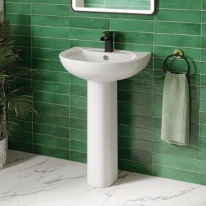 Enhance your bathroom space with the Essentials Budget Bathroom Sink, a high-quality option that combines style, function, and affordability. Suitable for a variety of spaces from large bathrooms to compact ensuites, and even cloakrooms, this basin ensures optimal performance without compromising on style. The sleek design of this basin comes with a pre-drilled single tap hole, ideal for installing a modern mono basin mixer. This setup not only saves space but allows for precise control over water flow and temperature, making it an efficient choice for any bathroom. Crafted from durable ceramic with a stunning white gloss finish, this basin is designed to resist stains and scratches, ensuring it maintains its pristine appearance over time. Its surface is easy to clean, contributing further to its longevity and ease of maintenance. The package includes a full pedestal which aids in supporting the basin and concealing unsightly plumbing, enhancing the overall clean and stylish