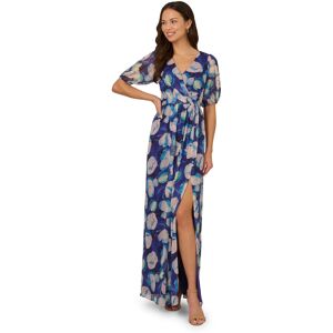 Discover effortless elegance with this flowy floral gown in blue crinkle chiffon fabric. Featuring a maxi length and surplice neckline, this dress evokes refined charm. The sheer puff sleeves add a touch of romance complemented by pleated bodice details and a soft A line skirt. The design is finished with a side slit and zipper back closure. Wear this lovely chiffon gown for formal day occasions or evenings out. Adrianna Papell Women's Crinkle Chiffon Floral Gown Size: 14