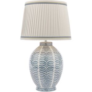 Enhance your living room or bedroom with the timeless elegance of the Laura Ashley Stannard table lamp. Featuring a beautifully pleated shade with a refined coloured trim, this exquisite lamp brings sophistication to any space. Perfect for an end table or bedside, its eye-catching print and classic silhouette create a stylish statement that effortlessly elevates your decor. FEATURES: * Table lamp * Blue ceramic * Natural faux silk shade * Double insulated * In line rocker switch * Requires 1 lamp * Braided blue cable SIZE: * Height: 60cm * Diameter: 35cm * Base height: 41cm * Base diameter 35cm * Shade height: 25cm * Shade diameter: 35cm LAMP: * Requires 1 x Edison Screw LED GLS lamp - NOT INCLUDED