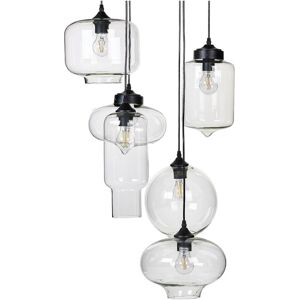 Modern Hanging Lamp with 6 Bulb Shades. Every living space needs to be properly illuminated, which can easily be done with this hanging lamp. Made out of transparent glass, it produces strong, ambient light, and thanks to adjustable cords, you can fit the lamp to your needs. Thanks to various shapes of the shades, and black metal parts, the piece will look especially good in modern, industrial interiors. Details: Product Type: Pendant Light Style: Modern General Color: Transparent, Black Material Type: Glass Main Material: Glass Additional Material: Metal Shade Material: Glass Adjustable Parts: Cord Length Wattage: 40 W Finish: Brushed IP Protection Code: IP 20 Light Bulbs Required: 6 Voltage rating: 230 V (50 Hz) Dimensions: Cord Length: 58/65/69/85/87/118 cm Depth: 26 cm Width: 40 cm Height: 155 cm Weight: 7 kg Offer Includes: 1 x Ceiling Lamp, Not Included: Light Bulb Key Features: Works Splendidly as an Ambient Light, Adjustable Cord Length, Perfect for Both a Bedroom and a Living