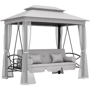 The 3 seaters multi-functional swinging garden chair can be converted to a single bed in seconds. With cushions, two soft pillows and two neck rolls, swing seat with canopy offers optimal comfort whether you are sitting or lounging. The removable zippered mesh curtains on all sides protect you against mosquitoes and allow for fluid air circulation. The gazebo swinging chair bench with a 300kg weight capacity allows you to relax on the comfortable swing chair hammock with your loved ones. OUTSUNNY 3 Seater Swing Chair Hammock Gazebo Patio Bench Outdoor in Light Grey
