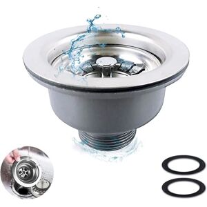 Unique Design: The sink strainer is double layer inside and outside, excellent corrosion resistance and easy to clean, not easy to fall off and waterproof. Wide Application: This sink drain set includes a strainer and a plug, which can act as a strainer to catch food residue to prevent your pipes from clogging, and keep the water in the kitchen basket as a stopper. Universal Fit: The sink collection is perfect for the sink size of φ110mmmm, we recommend sink connection diameter of φ83 - 90mm, please make sure the diameter of this sink filter plug and its rubber ring is the same as before. Easy Installation: There is a soft washer on the top and bottom of the sink, you just need to turn the screw to complete the installation. It is also OK to turn the screw with a coin. High quality. This kitchen sink strainer is made of stainless steel and PVC and will not rust. Corrosion resistance.