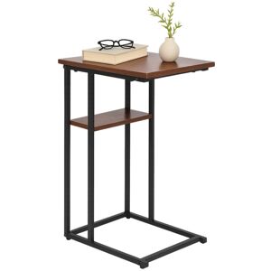With this practical C-shaped side table, you'll have everything you need to relax within easy reach. Snacks, drinks, remote controls, and mobile phones can be placed on the small and large shelves. Thanks to its convenient height, you can easily access everything from your sofa or armchair. The combination of a sturdy metal frame and wood-effect table tops makes this modern side table a stylish companion in your living room. Side table in detail - Overall dimensions H x W x D: approx. 60 x 40 x 30 cm - Load capacity of upper shelf: approx. 35 kg - Load capacity of lower shelf: approx. 3 kg - Material: MDF, iron - Available in various colours Further details about the C-table - Upper shelf W x D: approx. 40 x 30 cm - Lower shelf W x D: approx. 26 x 13 cm - Space between shelves: approx. 59 cm - Distance from lower shelf to floor: approx. 38 cm Living room table for sliding underneath - 2 rectangular shelves in an attractive wood effect - For placing snacks, drinks, magazines, and more.