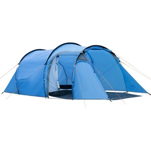 Discover the great outdoors with the Outsunny Camping Tent, a spacious tunnel tent designed for 3-4 adventurers. Featuring a bedroom and living area for lots of space, this waterproof tent ensures you stay dry with its 3000mm water-resistant polyester shell. Light up your nights safely with the convenient lantern hook. Great for family trips, this large, lightweight tent brings comfort and fun to any camping or backpacking escapade.- Bedroom and living room comfortably fit 3-4 people; - 3000mm water-resistant polyester ensures interior remains dry in rain; - Lantern hook provides illumination at night – avoid open flames; - Ventilated windows introduce fresh air; Doors ensure convenient entry; - Includes 14 ground stakes and 6 guy ropes for stability; - Carry bag for easy transport and storage simplifies travel;- Colour: Sky Blue; - Materials: Polyester fabric, Fiberglass, PE; - Overall Dimensions: 470L x 220W x 150Hcm; - Folded Dimensions: 67L x 22W x 22Hcm; - Bedroom Dimensions: 210L x 160W x 150Hcm; - Living Room Dimensions: 210L x 120W x 150Hcm; - Door Size: 95W x 132Hcm, 92W x 80Hcm; - Window Size: 56W x 47Hcm; - Hook Weight Capacity: 1kg; - Item Label: A20-400V00LB; Outsunny