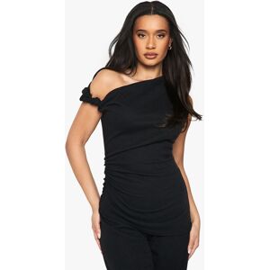 Boohoo Womens Textured Off Shoulder Ruched Top - Black Viscose - Size 14 Uk