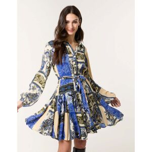 A beautiful printed patchwork dress, prefect for the office this Spring/ Summer. This dress can be styled differently for each and every season. 100% Viscose Made in India Machine washableCollar neckline Long button sleeveButton frontBelted waist Model wears a size S: Model height: 5ft 9 / 175cm