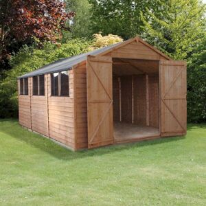 The 15 x 10 Overlap Apex Wooden Workshop offers a vast, open and spacious interior and is suitable for many purposes. This building would make a great workshop, with ample space for large equipment and tools, or you may simply require a large storage shed for garden equipment and furniture. Boasting double doors, this building provides easy access and storage of large items such as wheel barrows and ladders. Styrene windows allow light into the interior while being safe and shatterproof. Made in the UK, using ethically sourced, FSC certified timber, this building is great for those who require a shed that offers great quality with excellent value. The walls of this store are made using horizontal boards that overlap each other, this traditional method of construction creates a solid panel that encourages rain water to run off the building, protecting your stored possessions from the elements. Solid sheet board is used to form the floor and roof, a durable material that is made up of several layers of tightly compacted oriented strands. Solid sheet board is perfect for everyday use and general storage. This building is complete with thick wooden internal framing to support the overlap panelling, creating a rigid, long lasting structure. The traditional apex roofline provides generous head height for storing taller items and storage units. Robust roofing felt, fixtures and fittings are all supplied as standard, alongside detailed instructions and our manufacturer’s recommendations to ensure a simple, stress free assembly process. This building comes with an Anti-rot guarantee, to ensure your garden building looks great and lasts the test of time, this building in particular comes with a conditional 10 year Anti-rot guarantee as well as a 12 month manufacturer’s warranty. Annual re-treatment is required to maintain your building and the Anti-rot guarantee.