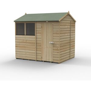 The Beckwood Shiplap Pressure Treated 8x6 Reverse Apex Shed with 2 Windows from Forest has traditional and sturdy design and is built in Britain for Britain. Built to withstand the elements, the shed can store anything from a simple spade to bikes, fishing equipment or outward bound gear! The shed's improved FULLY modular design features smaller sections, same size panels are fully interchangeable. The shed is made using robust, interlocking, weather-beating pressure treated shiplap cladding throughout, giving it a watertight seal. Supported by 30%-thicker framing than found on most wooden sheds, this 8x6 shed is constructed to last. The pressure treatment that has been applied gives this shed a 25-year anti-rot guarantee, giving you complete maintenance freedom, annual preservative treatment is NEVER needed! Most other sheds require treatment once built then yearly thereafter. Rather than the more common OSB (oriented strand board), this 8x6 shed features an extra-thick interlocking tongue and grove floor allowing for the storage of heavier items. The roof of this reverse apex shed is made from hardwearing 8mm solid sheet, finished with a durable, high quality green felt cover for complete weatherproof protection.This 8x6 shed’s door features a double-Z frame, giving strength and to prevent door movement. Security is enhanced with hidden hinges and a heavy duty, traditional pad bolt to keep valuable items safe (padlock not included). What’s more, the door can be fitted with a left or right-hand opening – the choice is yours. The Shed has acrylic glazing, which is more secure than traditional glass and does not yellow or fade over time. With its traditional reverse apex roof, this wooden shed will look good in any garden. Handcrafted in the UK using FSC® certified timber, this garden shed comes with a full set of fixings and clear instructions to help you achieve a straightforward assembly. This shed is delivered free to most UK addresses, using Forest Garden's White Glove Delivery Service, so will be dropped off wherever you want it in your garden, with all packaging removed. Forest Garden