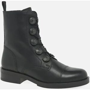 A combat boot perfect to take with you into the new season, the Gabor Lady women's biker boots opt for a lightweight synthetic sole with grip granting properties. Secure with a sneaky side zip with warm micro fibre linings hugging the feet - perfect for autumn/winter. Stitching accents mark around the combat boot and 5 buttons line up either side at the front of the boot for the laces to rest on making the boots look modern and stylish. A rear pull tab helps slide feet into the women's Lady biker boots from Gabor with a 2.5cm heel underfoot.
