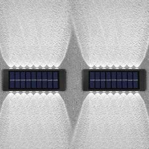 【16 LED Solar Outdoor Wall Light】The decorative solar wall lights have 8 LED lights on the top and bottom, they can produce even, bright and soft light and the focusing lens is brighter and wider than the ordinary lenses.Solar Wall Light are equipped with 3000K LED floodlights, which emit warm white light and make your garden or courtyard more beautiful and attractive.Solar Wall Light It can also meet your daily needs very well.< /p> 【Easy to Install Top and Bottom Outdoor Solar Lights】Outdoor wall lights no cables required.Solar Wall Light Comes with an installation kit, simply screw the solar wall light to n any wall, fence, patio or post. If you are worried about damaging the turntable, use double-sided tape on the flat back. Using solar energy for charging not only saves energy and protects the environment, but also saves you a lot of electricity bills. 【 【Widely Used】The beautiful lighting effect of decorative solar wall lights adds a touch of luxury and decoration to your home,