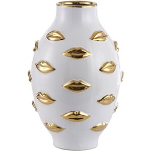 The Handmade with Gold Lips Design Ceramic Vase is perfect for those who appreciate modern home decor with a touch of playful sophistication. Its sleek ceramic finish, paired with the whimsical gold lips design, makes it a bold statement piece. Whether showcasing fresh flowers or dried arrangements, or simply standing as a decorative accent, this vase effortlessly adds a sense of charm and luxury to any room. Handcrafted with precision, this vase enhances both contemporary and luxury interiors, offering a perfect blend of modern art and functionality. Fairmont Park Size: 37.5cm H x 23.5cm W x 23.5cm D, Colour: White/Gold