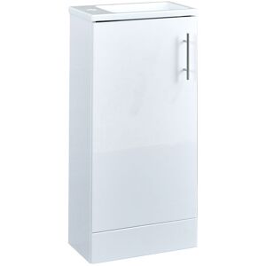 GENERAL DESCRIPTION Create a modern and stylish look in your bathroom or cloakroom with the freestanding Milano Lurus vanity unit and basin. It features a cupboard with a reversible soft close door and a chrome handle for discreet storage of toiletries. The unit is made from engineered wood with a white gloss finish for durability. The basin has a slimline profile, is easy to clean, and includes a single tap-hole for a mono basin tap. TECHNICAL SPECIFICATIONS FSC engineered wood construction with white gloss finish Modern freestanding design Cupboard with reversible soft close door and chrome handle Slimline basin with easy to clean coating Assembly required before installation Tested and certified to meet EN14749 and EN14688 standards 5-year warranty Dimensions: 400mm x 220mm x 798mm COMPATIBILITY AND ACCESSORIES Requires a mono basin tap, unslotted waste, and flexible bottle trap.