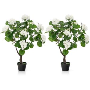 Our artificial hydrangea tree is a stunning masterpiece that brings the beauty of nature to your space.Adorned with 11 vibrant hydrangea flowers and lush green leaves, this faux flower tree perfectly captures the essence of a real tree. Additionally, the simulated trunk and faux grass make it more exquisite. Meticulously crafted with premium silk fabric, the indoor artificial tree is odor-free and not easy to deform. Compared to real plants that may wither or die, our faux floral plant will stay alive all year round! And there is no more meticulous maintenance required. Besides, the flower pot is reinforced by cement. The added weight makes the artificial tree less prone to tip over. Moreover, its realistic appearance makes it a charming addition for front porch, living room and balcony. Features:11 lifelike silk hydrangeas make it a vivid addition in home88 verdant leaves and faux small grass bring nature to your spaceHigh quality material is allergic-proof and odor-freeCement-filled