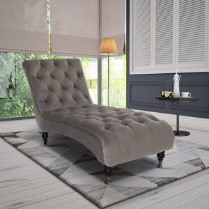 A perfect blend of old meets new. This sleek and modern chaise lounge chair combines the decorative sophistication of deep chesterfield buttoning on the back and seating with the vibrant and luxurious feel of polyester velvet fabric. The dense foam filling ensures maximum comfort, while the hardwood frame and stylish wooden feet in the back provide stability and durability. Handmade - exact measurements may vary slightly. Brush/steam velvet fabric to remove any transit pressure marks & give the fabric its plush look. Shades may appear slightly different under different lighting, our chairs are photographed under bright studio lights. If in doubt, please order a fabric sample. Rosdorf Park Upholstery Colour: Sage Green