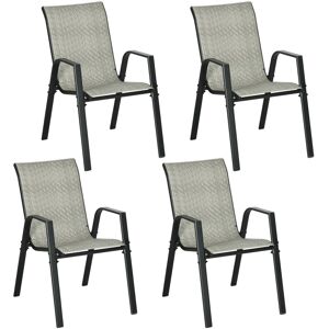 Feature: Four garden chairs per set Stackable design is easy to store Strong powder coated steel frames, with rattan seats Foot pads protect floor from scratches Easy to assemble Specification: Colour: Khaki Material: Steel, PE Rattan Chair Dimension: 52W x 70D x 85H cm Seat Size: 42W x 43D x 43H cm Back Size: 42W x 44H cm Weight Capacity: 150 kg Item Label: 861-073V00KK 4 x Rattan Garden Chair 1 x Manual