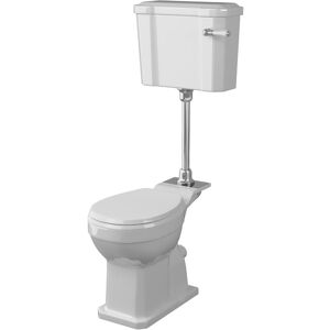 Kinston Traditional Mid Level Toilet Pan with Cistern, Ceramic Flush Handle & Soft Close Seat in White by Balterley Bring timeless charm and elegance to your bathroom with the Balterley Kinston Mid Level Toilet. Its classic design adds a sophisticated focal point while offering modern comfort for everyday use. The soft-close seat ensures quiet, gentle use, making it ideal for family homes or shared spaces. Durable and stylish, this toilet enhances daily routines with ease and reliability. Its mid-level design combines vintage character with practical comfort, creating a bathroom experience that feels both luxurious and welcoming every day. Product Highlights: White Finish: Finished in a timeless white, this high level toilet suits a wide range of bathroom décors, from elegant traditional interiors to transitional designs that combine modern and classic elements. Mid Level Cistern Design: Raised cistern with connecting flush pipe blends traditional charm with practical modern