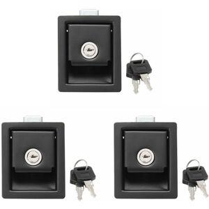 Durable, rust and weather resistant structured with black coating , ready to handle environments Pulley panel door lock type, apply for electrical cabinet size: 9x6.8x4cm Material: metal color: black Package Contents: 5 * 10 * keys Only the above package content, other products are not included. Note: Light shooting and different displays may cause the color of the item in a little different from the real thing. The measurement allowed error is +/- 1-3 cm.