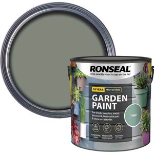 Ronseal Garden Paint has been designed to add colour to the whole garden, and not just on wood. It can also be used on other garden substrates such as metal (primer may be needed), terracotta, brick and stone. It adds colour, waterproofs and improves water repellency. Its high solid content leads to a high film build and longer lasting protection. It is rainproof in an hour and will resist cracking and peeling. Available in many colours.1 x Ronseal Garden Paint Sage 2.5 litreAdditional Information:• Paint Type: Garden Paint• Colour: Green• Size (L): 2.5
