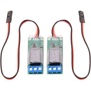 Support high voltage 5-9V receiver. 300W power relay. Transparent heat shrinkable tube help users see the working status of the LED clearly, stylish appearance. Two LEDs indicate working status. Max DC30V 10A Add no signal protection With boot protection, easy to operate Input channels do not need to be calibrated, compatible with various of remote - control devices Small size and light weight Application range: Remote control model launch Remote control model smoke control Weapon system control like real machine Model aircraft's smoke control Control of various remote switch systems Switch the signals of two cameras Control the opening and closing of various electrical power sources, such as navigation lights, searchlights, strobe lights, buzzers, etc. Control the camera shutter or switch the camera's recording and camera mode. Colour:As shown Material:PC+Metal Package Contents: 2 x RC relay switch Only the above package content, other products are not included. Note: Light