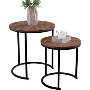 Elevate your living space with this set of two nesting tables, thoughtfully crafted to blend functionality and style. Boasting a sturdy metal frame paired with durable materials such as mdf, these tables ensure both longevity and stability. The tables are finished with a powder-coated treatment and paper finish, offering a sophisticated aesthetic. These nesting tables allow you to personalize your decor effortlessly. The practical design allows the tables to neatly nest under each other, maximizing space efficiency and offering easy storage when not in use. Coming in colour options of dark wood, grey or marble means you can select the one which you feel goes best with your existing décor. Borough Wharf Table Top Colour: Dark Wood