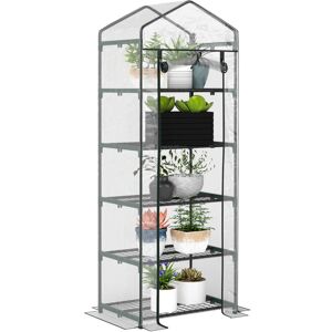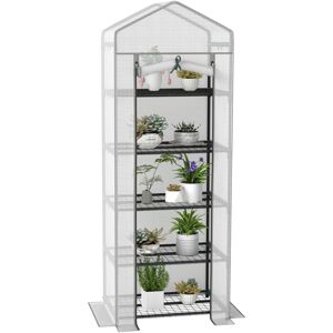 This 193cm Outsunny greenhouse is made for the smaller places - whether flat balconies, front porches or a corner spot in your home. The PE cover creates a safe shelter from outer elements. It comes with a roll-up door to get inside easily. Five metal shelves inside to give you space to organise inside. For all spaces large and small, you can start your greenery journey straight away with this growhouse. Specifications: ● Colour: White, Green ● Material: Steel, Polyethylene ● Overall Dimension: 69L x 49W x 193H cm ● Door Size: 51W x 168H cm ● Shelf Size: 60L x 46W cm ● Shelf Height: 32 cm (each shelf) ● Windproof: Level 4 (wind speed below 28km/h) ● Weight Capacity: 15 kg(each tier) ● Item Label: 845-383V02WT Features: ● 140gsm plastic cover protects plants from outside, whilst still allowing nourishing sunlight through for growth ● Five shelves for standing and organising plants, flowers, vegetables and fruits ● Portable and compact design is great balconies, patios, city living and
