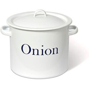 Keep your onions fresher for longer with the Garden Trading Enamel Onion Store in White—a stylish and practical solution for pantry or cupboard storage. Designed to create the ideal cool, dark environment, this enamel container helps reduce sprouting and spoilage, so you can enjoy longer-lasting produce. Crafted from durable enamel with a crisp white finish and contrasting lettering, it adds a clean, vintage-inspired look to any kitchen, larder or utility room. The removable lid encourages ventilation, while twin side handles make it easy to lift and carry—even when full. For a beautifully co-ordinated look, pair with the matching Enamel Potato Store and Garlic Store (available separately). Dimensions: 17.5cm (H) x 20cm (W) x 20cm (D). Weight: 0.92kg. Why We Love It: It’s just the right size for keeping several onions neatly tucked away, with the added benefit of light protection. This stylish enamel onion store comes with a 12-month manufacturer's guarantee.